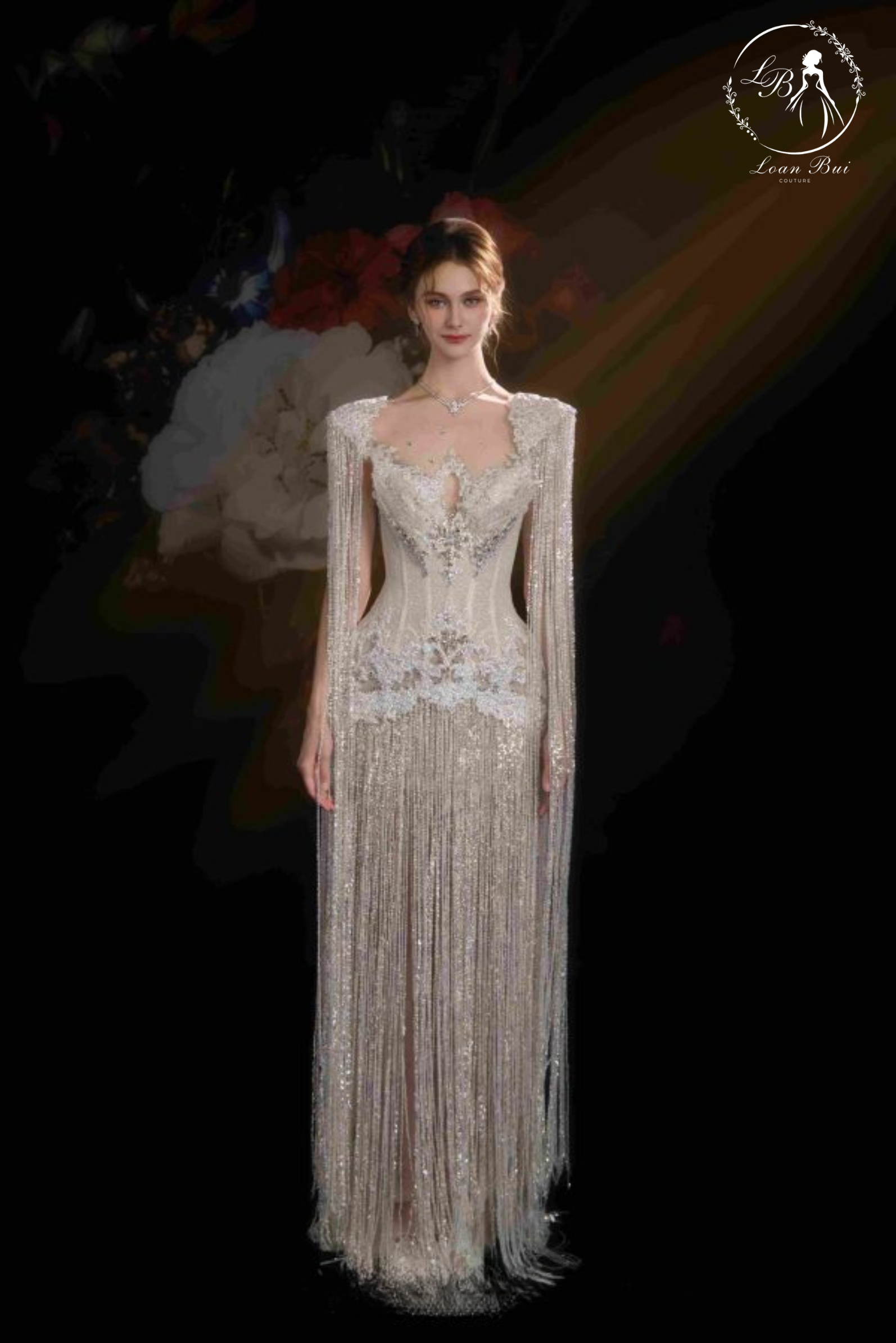 Váy cưới đi bàn tại Loan Bui Couture là những mẫu váy có được tiêu chí thích hợp cho tính đặc thù trong việc di chuyển tại những bữa tiệc cưới. Nhịp nhàng, thướt tha trong từng chuyển động là những gì mà những chiếc váy trong bộ sưu tập này có thể đem đến cho các nàng đấy nhé. Đến với Loan Bui Couture, để chúng tôi có được vinh hạnh trong việc mang đến cho nàng sự uyển chuyển và thoải mái. Đặc biệt khi cô dâu đặt váy thiết kế riêng, Loan Bui Couture sẽ tạo ra tác phẩm váy vừa vặn đến từng cm như thể chiếc váy sinh ra là dành cho nàng.