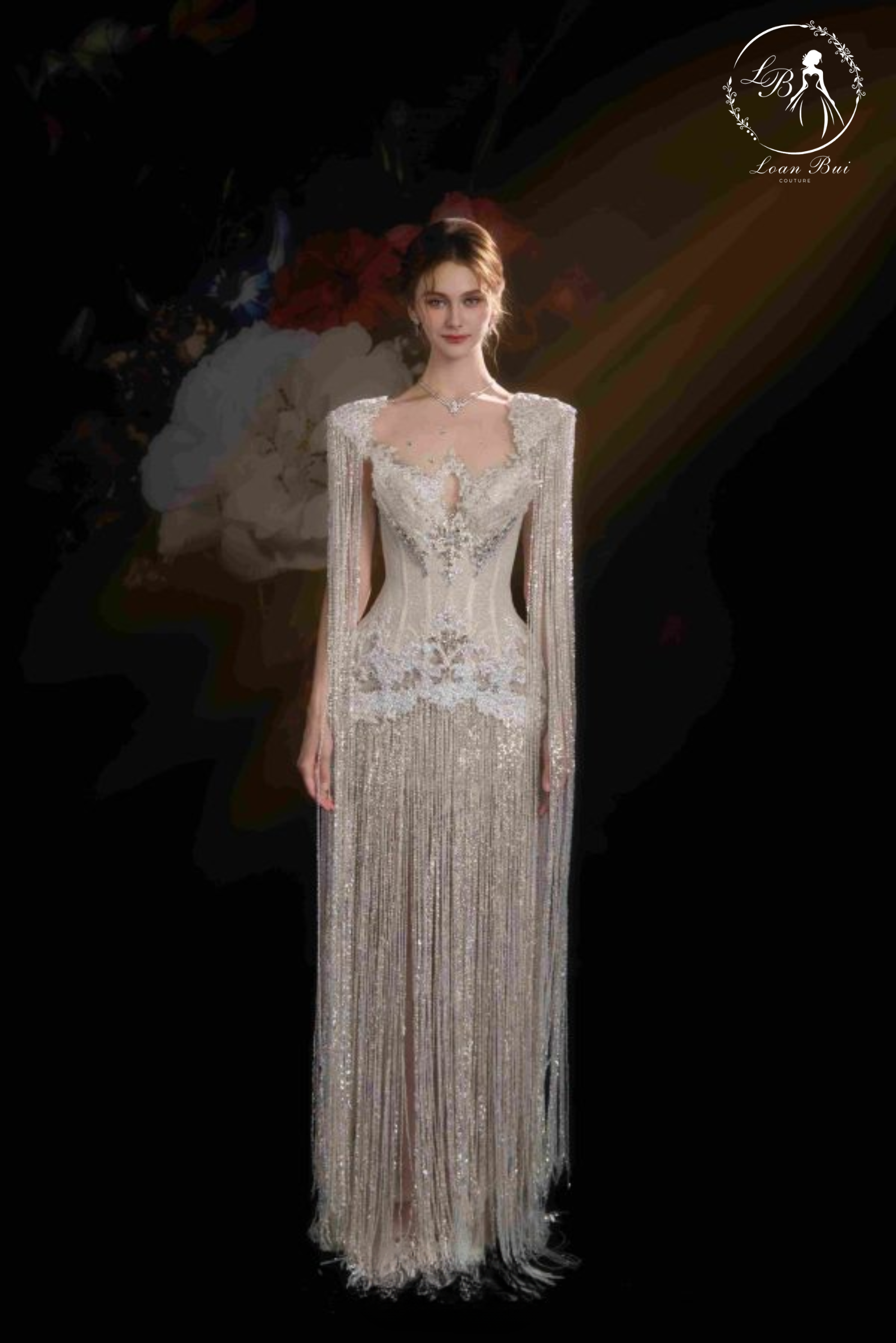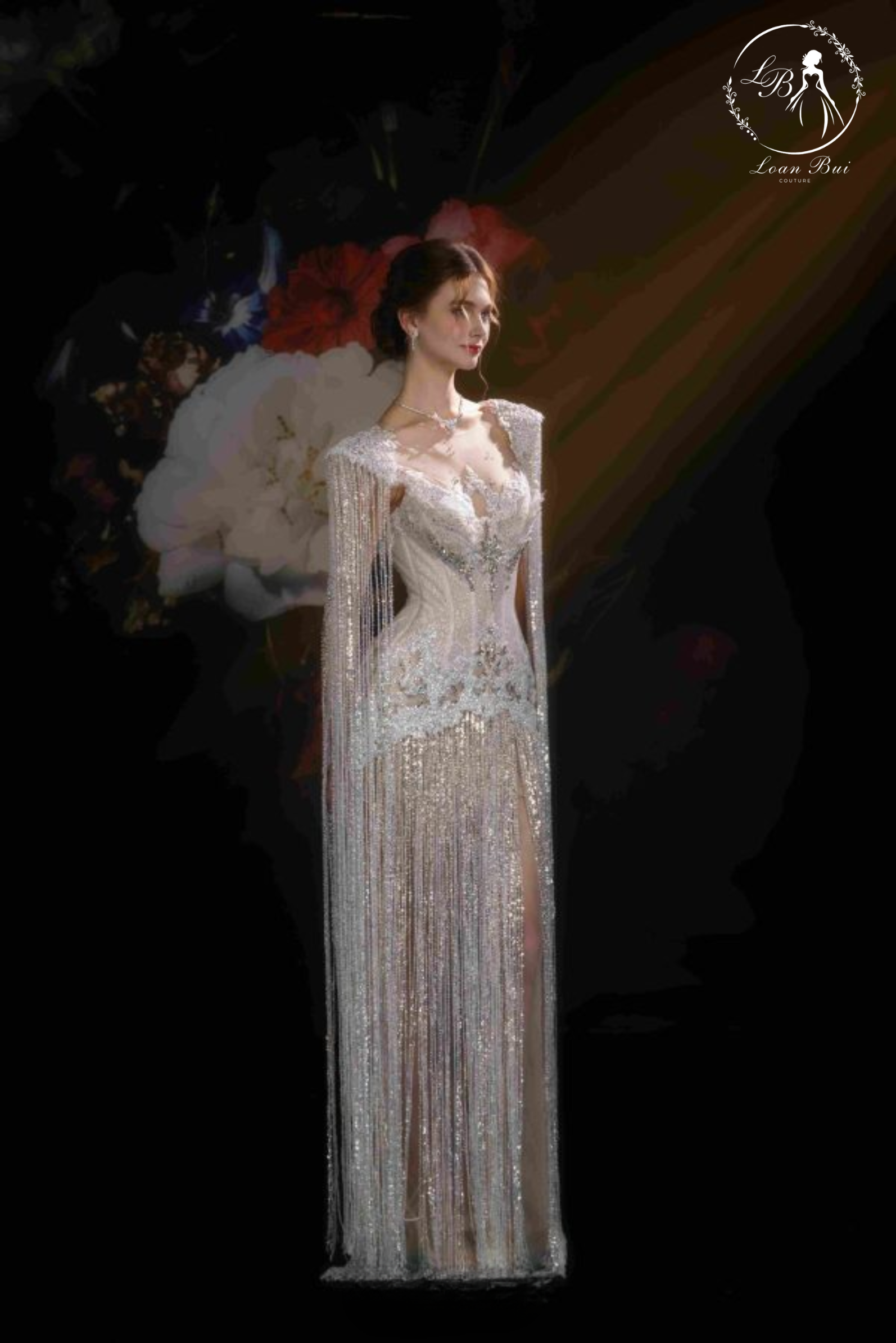 Với Váy bàn đuôi cá LMBCT325 mang thiết kế được thổi hồn bằng sự ngôn ngữ thiết kế sang trọng và độc đáo, tại Loan Bui Couture, mỗi chiếc váy còn là một tác phẩm nghệ thuật được tạo nên từ sự sáng tạo và đôi bàn tay khéo léo của những nghệ nhân giàu kinh nghiệm hội họa, được đi qua khâu kiểm duyệt khắt khe trong từng đường kim sợi chỉ.