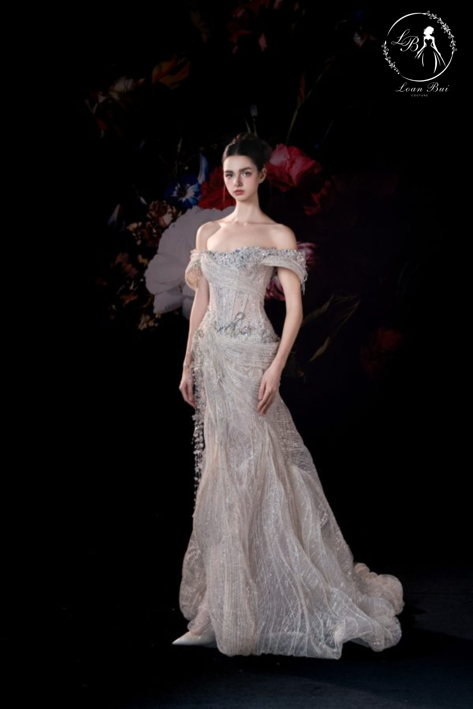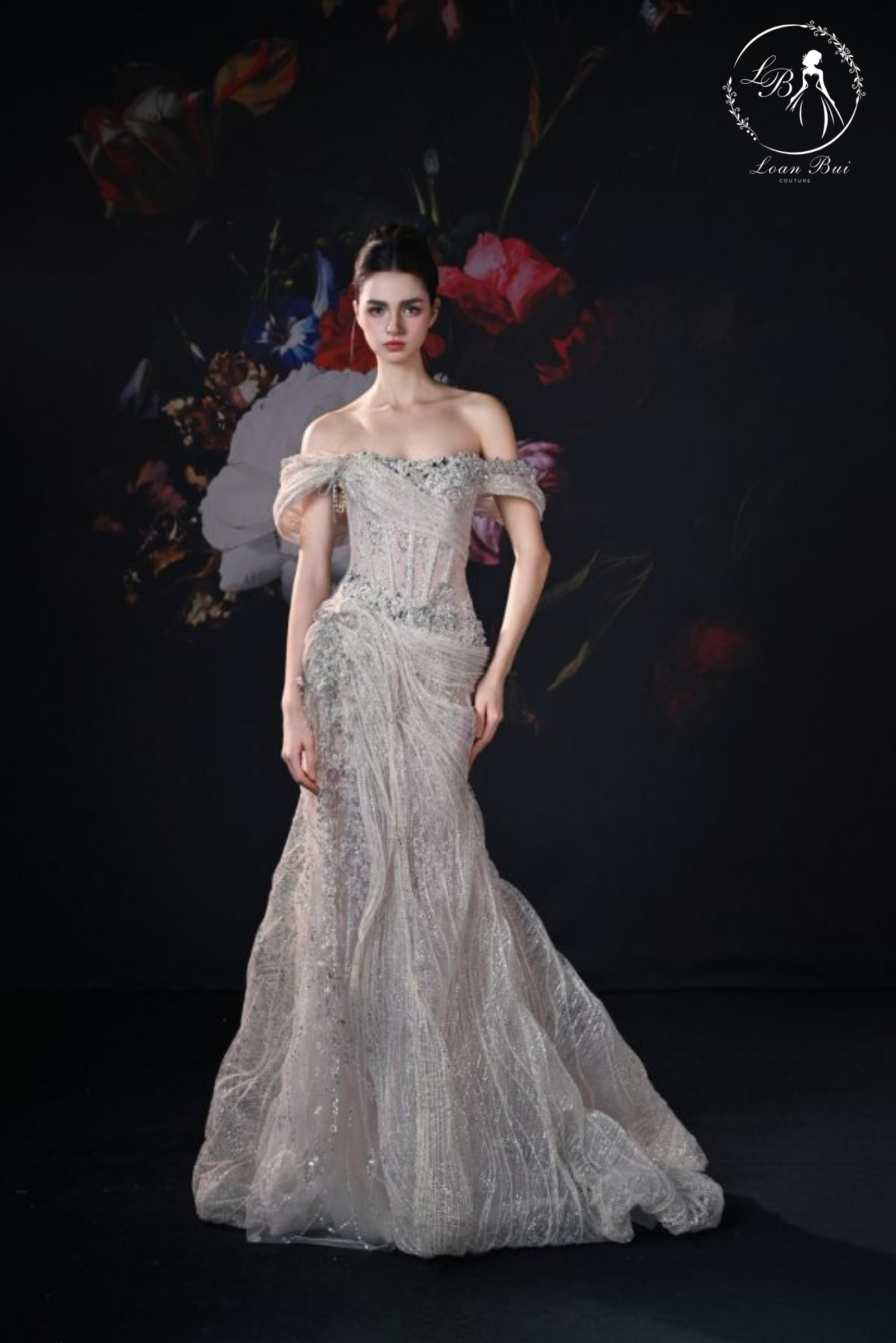 Loan Bui Couture sẽ là nơi để bạn viết nên câu chuyện cổ tích tình yêu của riêng mình.Với Váy bàn đuôi cá limited-LMBCT318 mang thiết kế được thổi hồn bằng sự ngôn ngữ thiết kế sang trọng và độc đáo, tại Loan Bui Couture, mỗi chiếc váy còn là một tác phẩm nghệ thuật được tạo nên từ sự sáng tạo và đôi bàn tay khéo léo của những nghệ nhân giàu kinh nghiệm hội họa, được đi qua khâu kiểm duyệt khắt khe trong từng đường kim sợi chỉ. Loan Bui Couture vẫn đang tự hào và cố gắng phấn đấu sẽ trở thành là một ước mơ của những cô gái chốn Sài Thành.