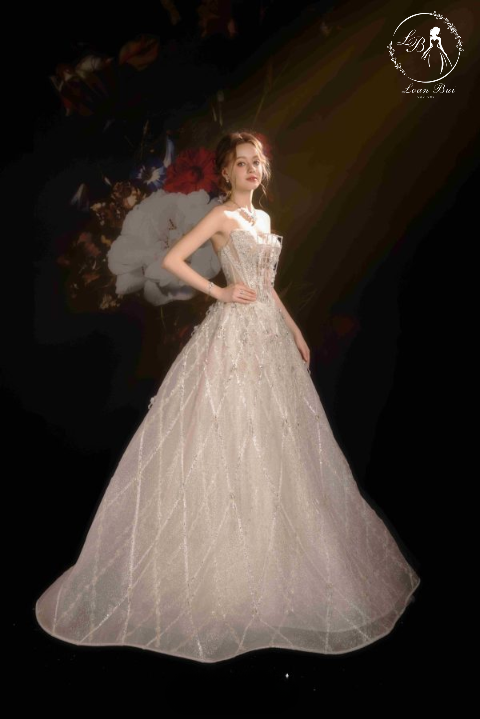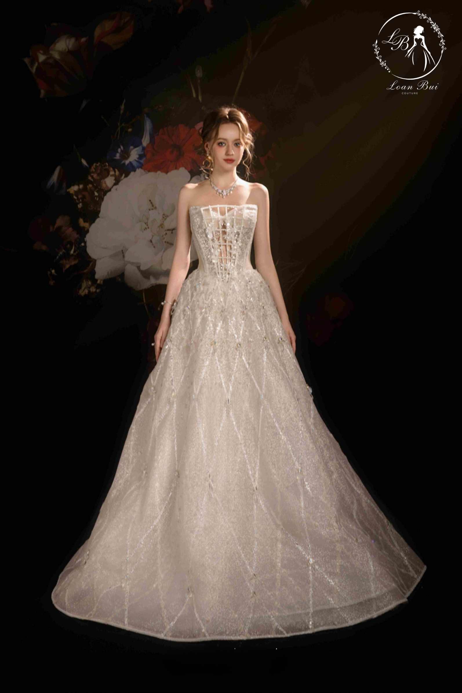 Loan Bui Couture sẽ là nơi để bạn viết nên câu chuyện cổ tích tình yêu của riêng mình.Với Váy bàn xuông A dòng limited-LMBAT235 mang thiết kế được thổi hồn bằng sự ngôn ngữ thiết kế sang trọng và độc đáo, tại Loan Bui Couture, mỗi chiếc váy còn là một tác phẩm nghệ thuật được tạo nên từ sự sáng tạo và đôi bàn tay khéo léo của những nghệ nhân giàu kinh nghiệm hội họa, được đi qua khâu kiểm duyệt khắt khe trong từng đường kim sợi chỉ. Loan Bui Couture vẫn đang tự hào và cố gắng phấn đấu sẽ trở thành là một ước mơ của những cô gái chốn Sài Thành.